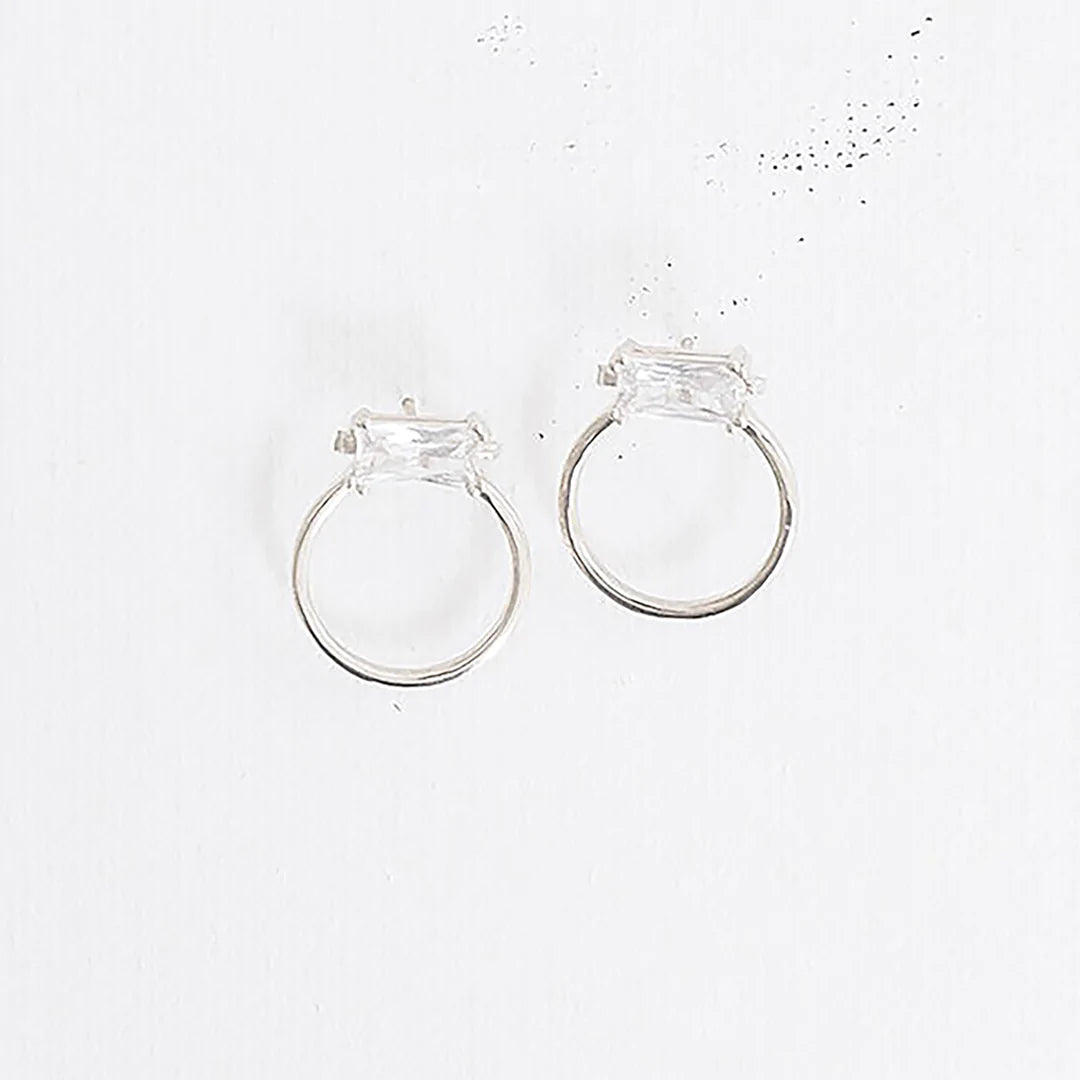 - 18k gold or silver plated open circle stud earrings with glass stone accent