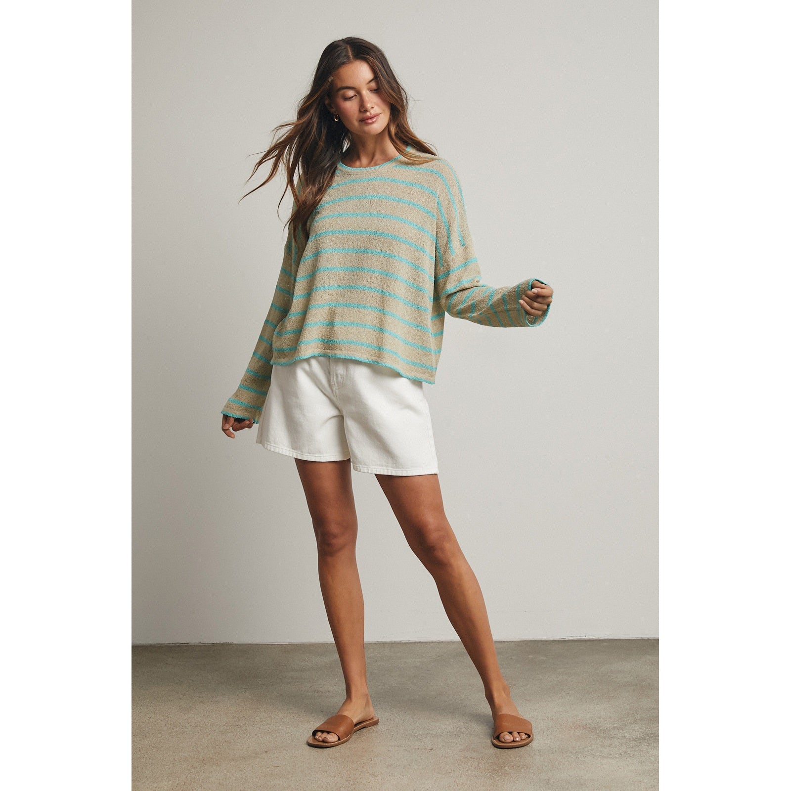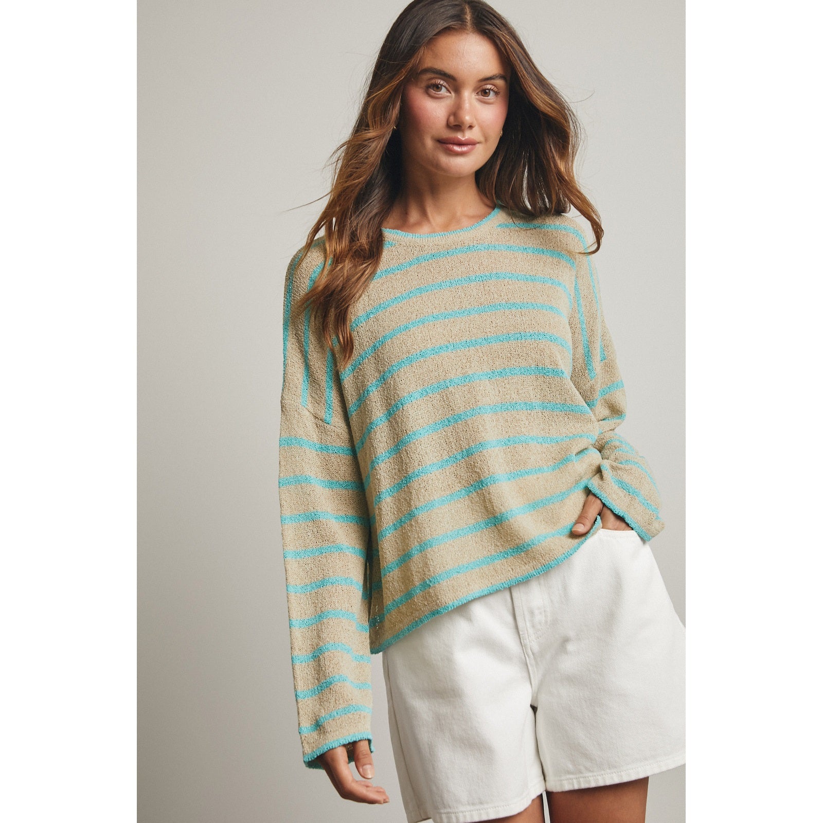 Teal & brown striped lightweight sweater - relaxed cropped fit