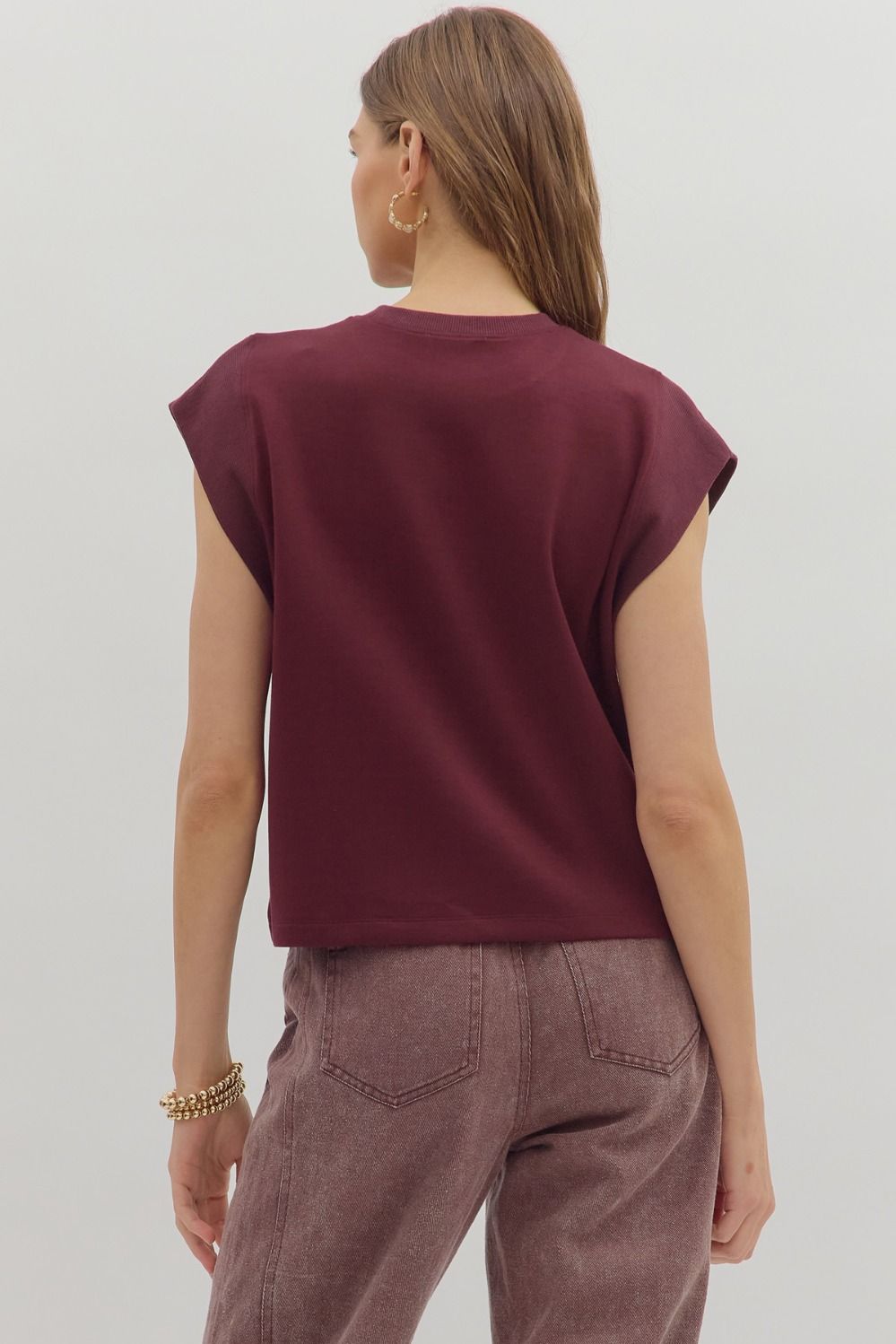 Solid cap sleeve crew neck pullover top. Unlined. Knit. Non-sheer. Lightweight.