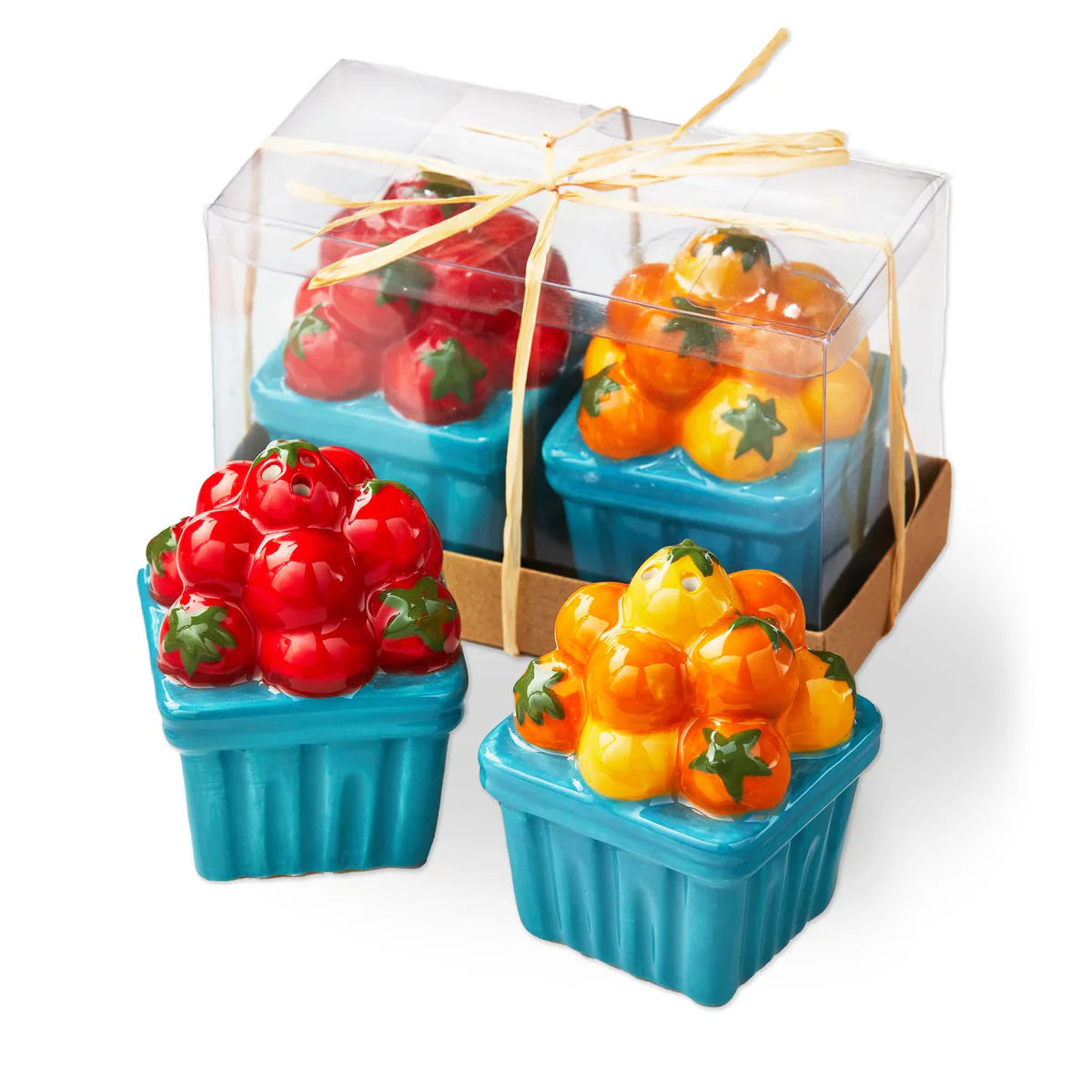 Bring the garden to your table with the garden tomato salt & pepper set. this charming set features two hand-sculpted and hand-painted earthenware shakers, each in the shape of a tomato basket. rubber stoppers ensure mess-free use.