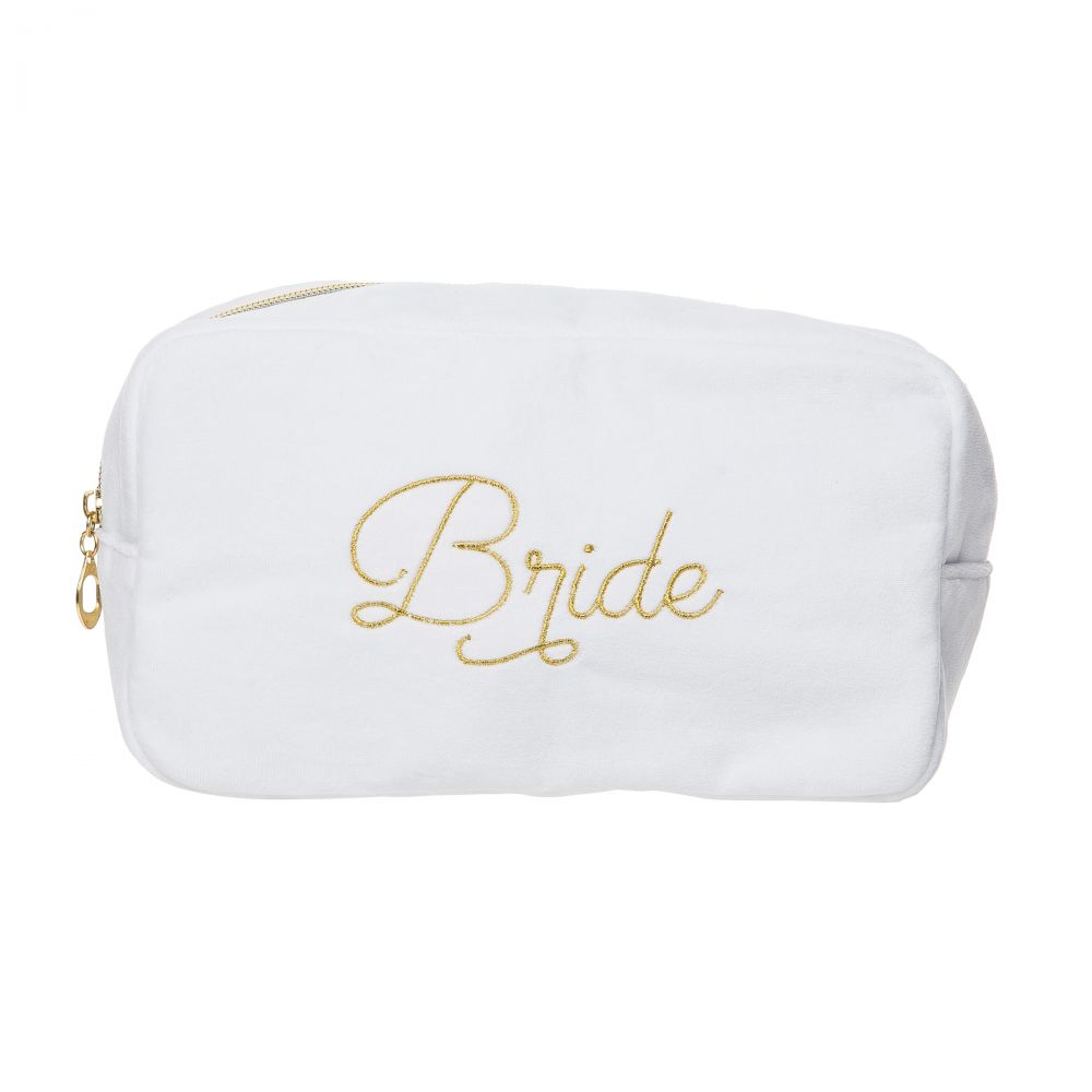 This large velvet bag is a must-have for any bride! This adorable bag is durable enough to hold makeup, hair accessories, toiletries, contacts and even a cell phone. Toss the bag in your purse or backpack to take with you while on the go. Not only is this perfect for the big day, but it can also be used for any occasion. This makes for a special gift for any bride.