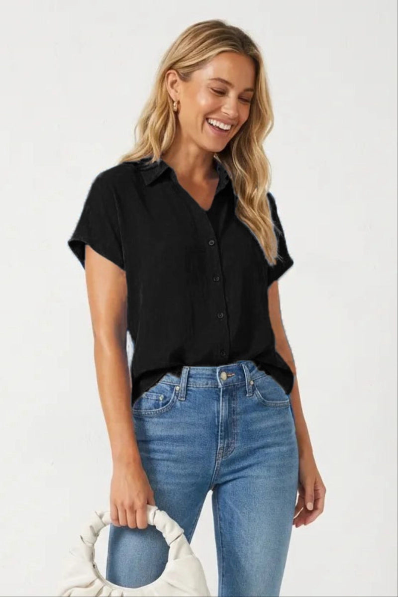 Drop Shoulder Button Up Blouse