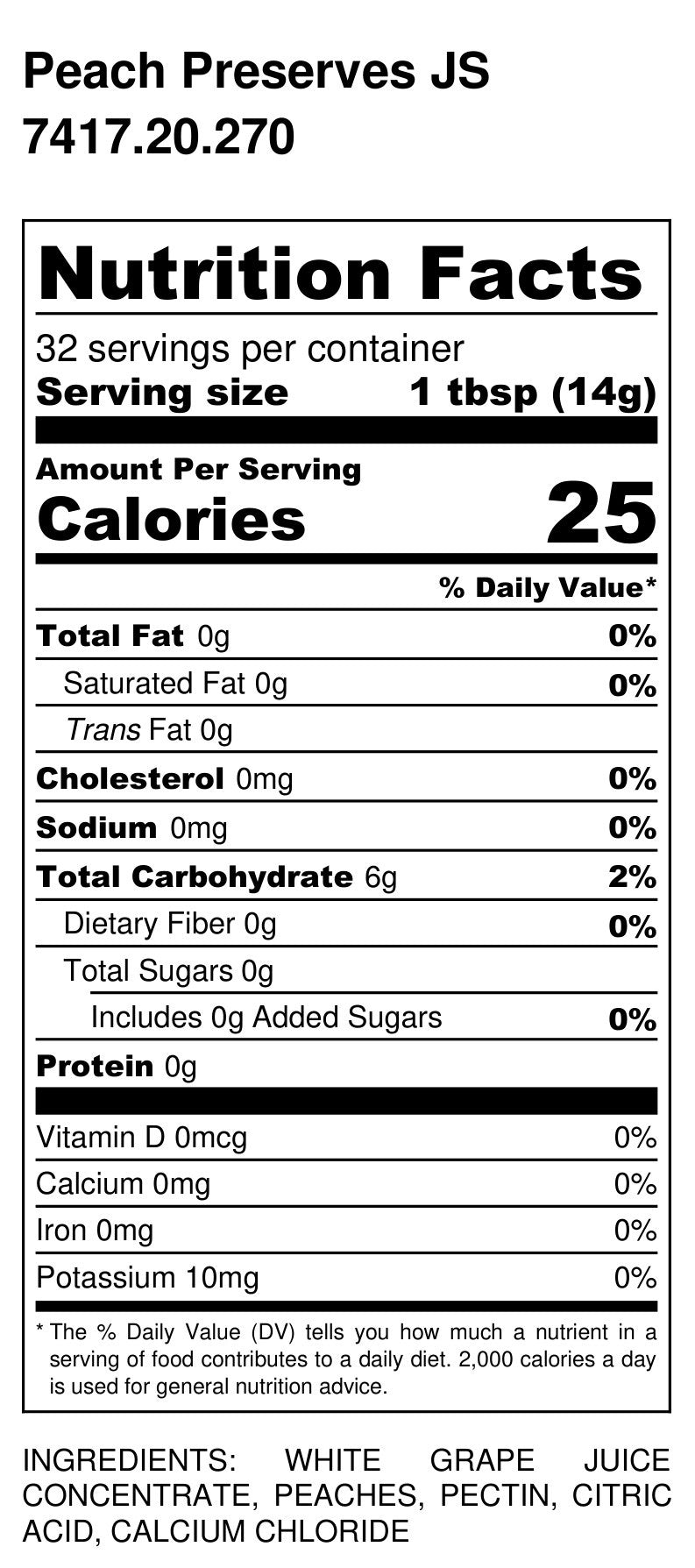 No Sugar Added! Thick, all natural peach preserves sweetened with grape juice concentrate.