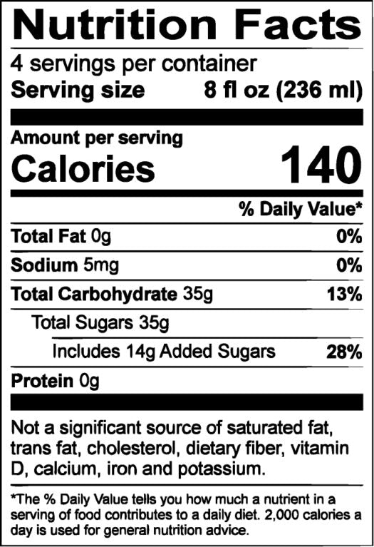 INGREDIENTS: Scuppernong Juice, Water, Sugar, Citric Acid.