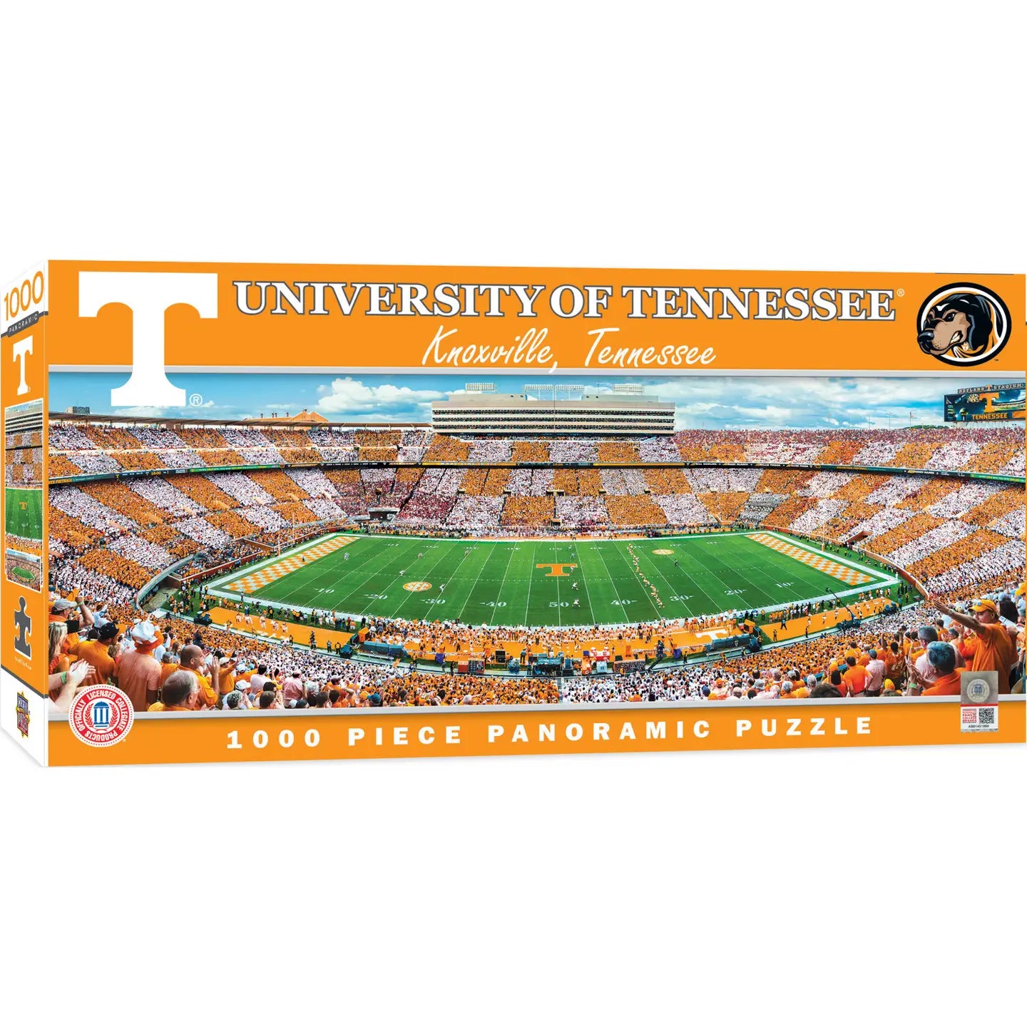 This MasterPieces NCAA 1000pc 13" x 39" Panoramic University of Tennessee Puzzle features the view from the sky box seat of Tennessee's Neyland Stadium with such incredible detail that it's common for you to find yourself as part of the photograph! To reduce its impact on our environment, the chipboard used in this puzzle is made of recycled material.