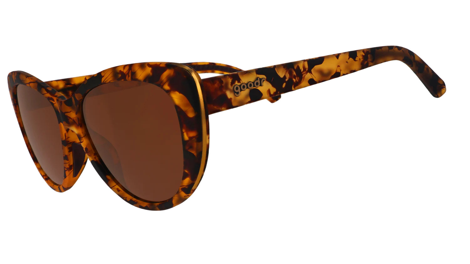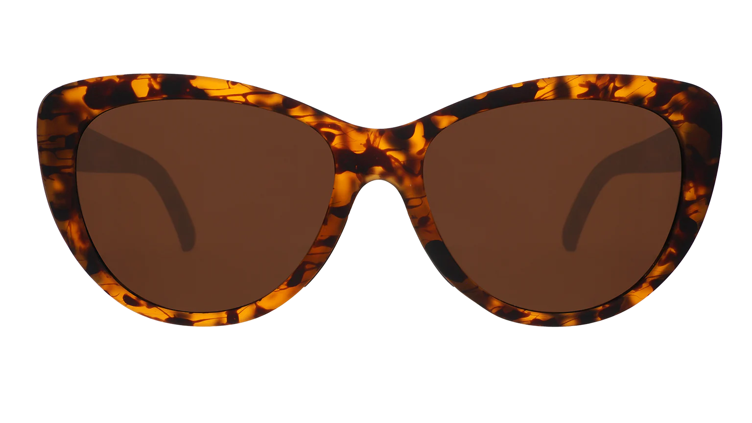 ME-OW!!! Take a walk on the wild side in these ferociously fashionable brown tortoiseshell sunglasses with brown non-reflective lenses and gold accents. WARNING: Wearing may result in an uptick of runway catfights due to extreme style envy.